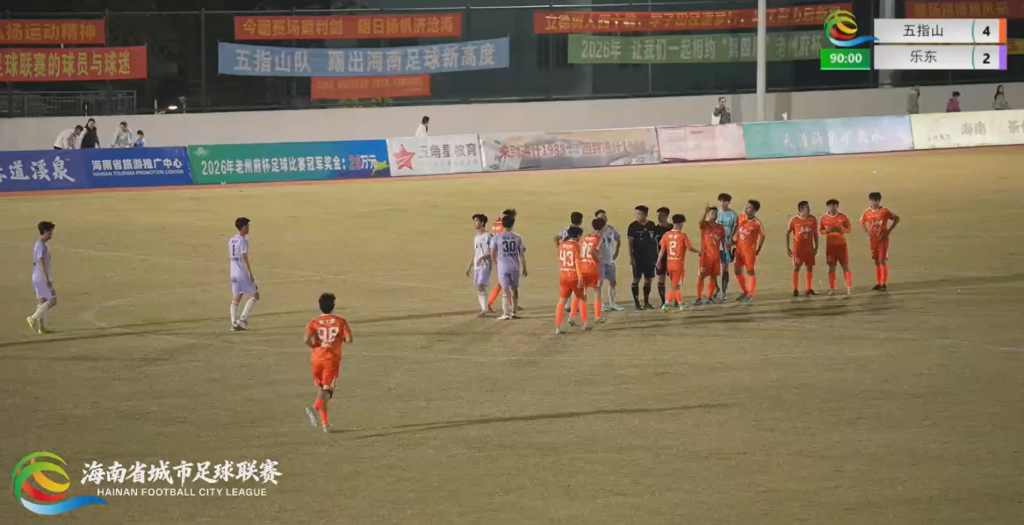 2026年1月24日19:30,“启航自贸港”第一届海南省城市足球联赛(琼超)常规赛第九轮南区赛事收官,五指山队主场以4:2击败乐东队,为两队本赛季的征程画上圆满句号。