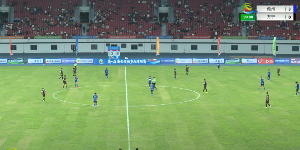 儋州队和万宁队比赛进球情况:第8分钟,儋州队36号曾尚多;第54分钟,儋州队4号王世传;第78分钟,儋州队4号王世传。