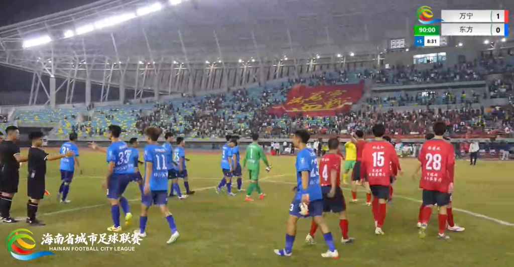 2026年1月17日19:30,“启航自贸港”第一届海南省城市足球联赛(琼超)常规赛第八轮南区焦点战,在万宁市文化体育广场主体育场落幕。主场作战的万宁队凭借终场前五分钟的关键进球,以1:0的比分绝杀东方队,斩获宝贵三分,进一步巩固了南区积分榜的优势位置。