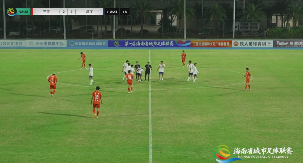 进球情况:第16分钟,昌江队20号温振超;第23分钟,三亚队32号胡音雄;第32分钟,昌江队55号范少博;第87分钟,三亚队33号马可。