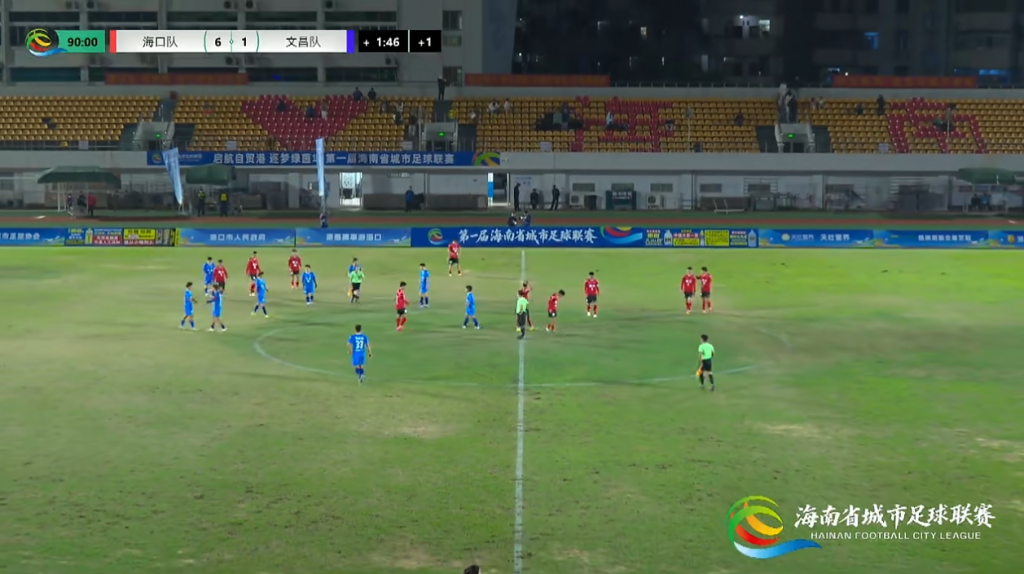 2026年1月2日晚,“启航自贸港”第一届海南省城市足球联赛(琼超)第六轮比赛在海南体育职业技术学院运动场精彩上演。主场作战的海口队与文昌队展开较量,最终海口队凭借更胜一筹的整体发挥,以6:1战胜对手,豪取四连胜!