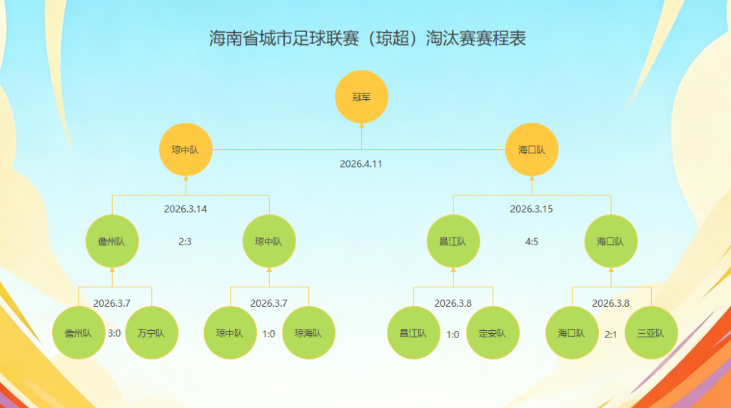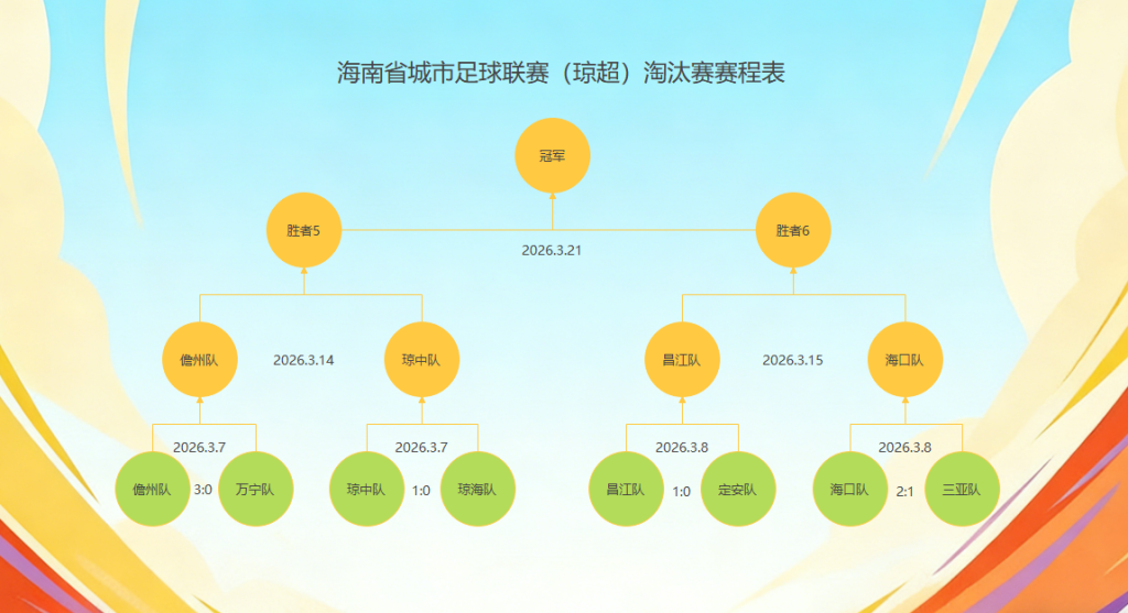 海口队 9 号球员周昌德以 9 球独占榜首,成为截至目前的最佳射手;儋州队苟一凡以 6 球紧随其后,万宁队王存得、定安队蒙鸿飞同积 5 球并列第三。儋州队、海口队、琼中队等球队进球点分布均衡,多名球员跻身榜单,展现了较强的整体进攻实力。